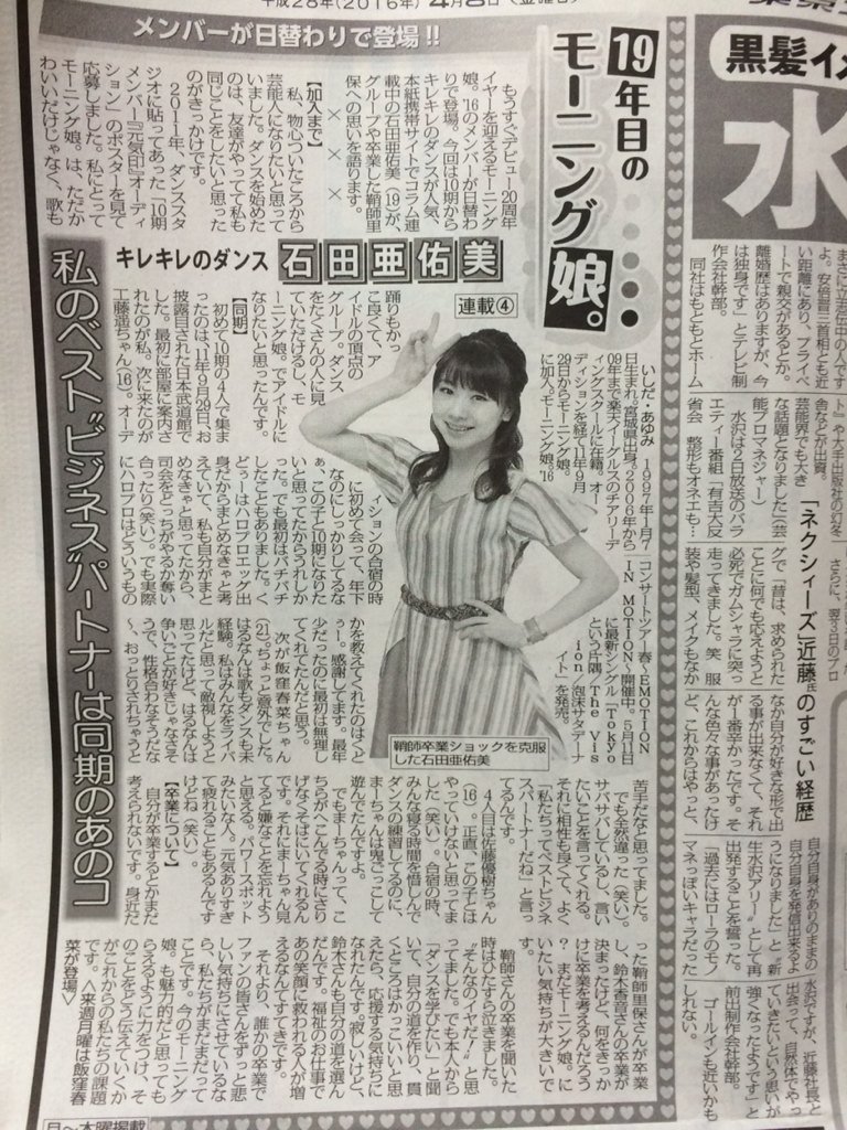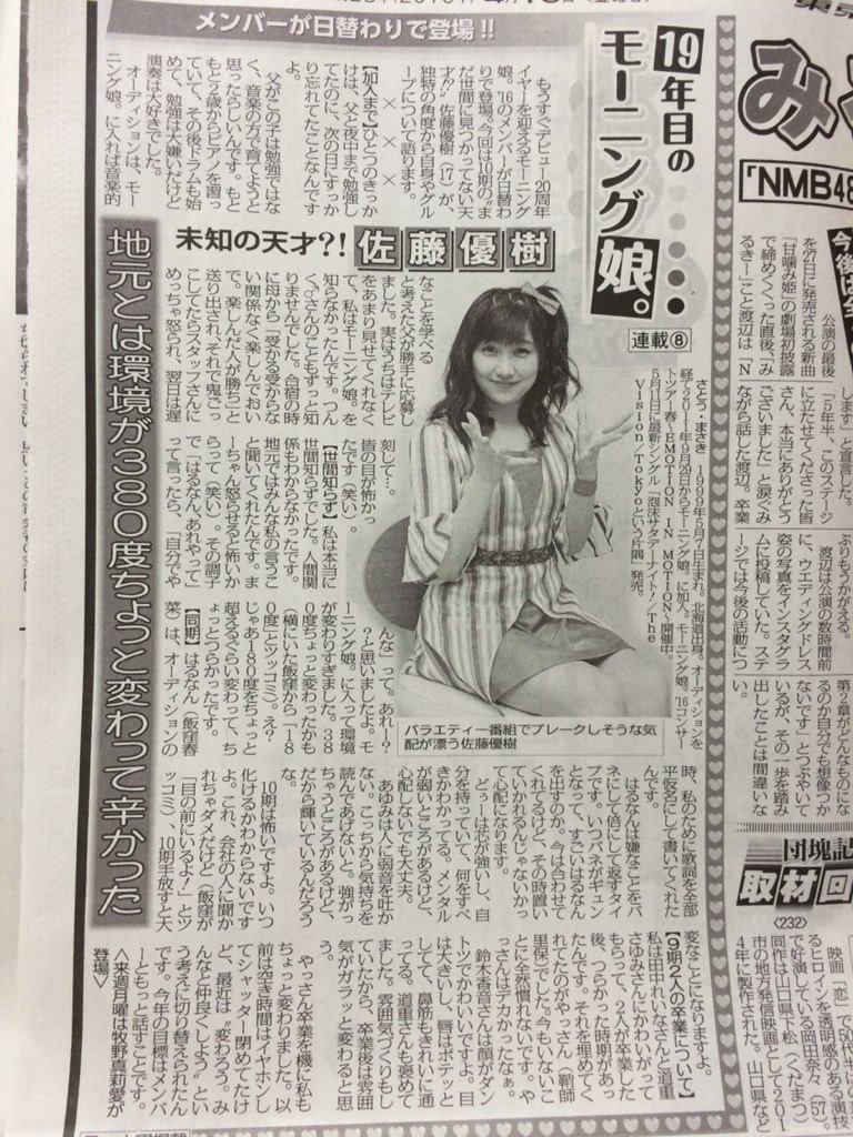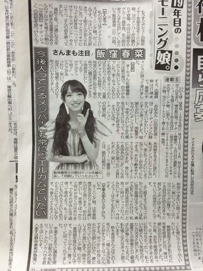 - 今週月〜木の東スポでアンジュルムから4人だけ、日替わりインタビューされてる